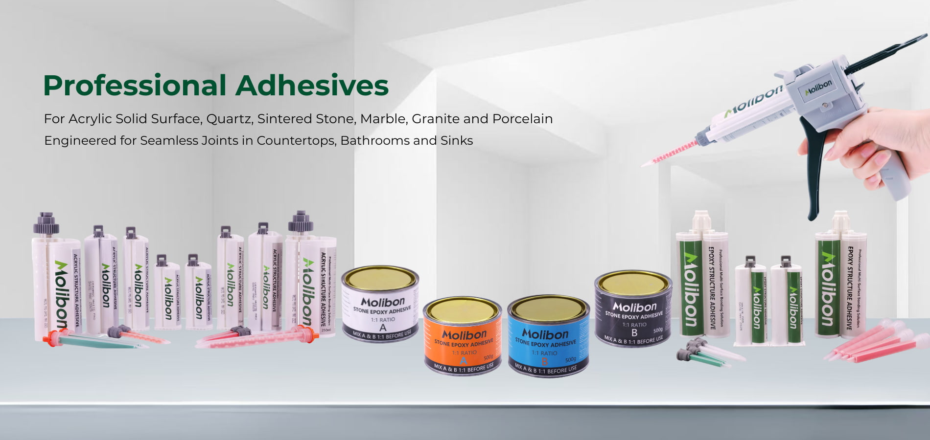 Xiamen Molibon New Materials Co., Ltd. focuses on the R&D and production of industrial adhesives, with stone adhesive as a key product. It’s widely used for bonding kitchen quartz countertops, solid surface islands, sintered stone countertops, seamless basins, marble countertops, and other stone applications.