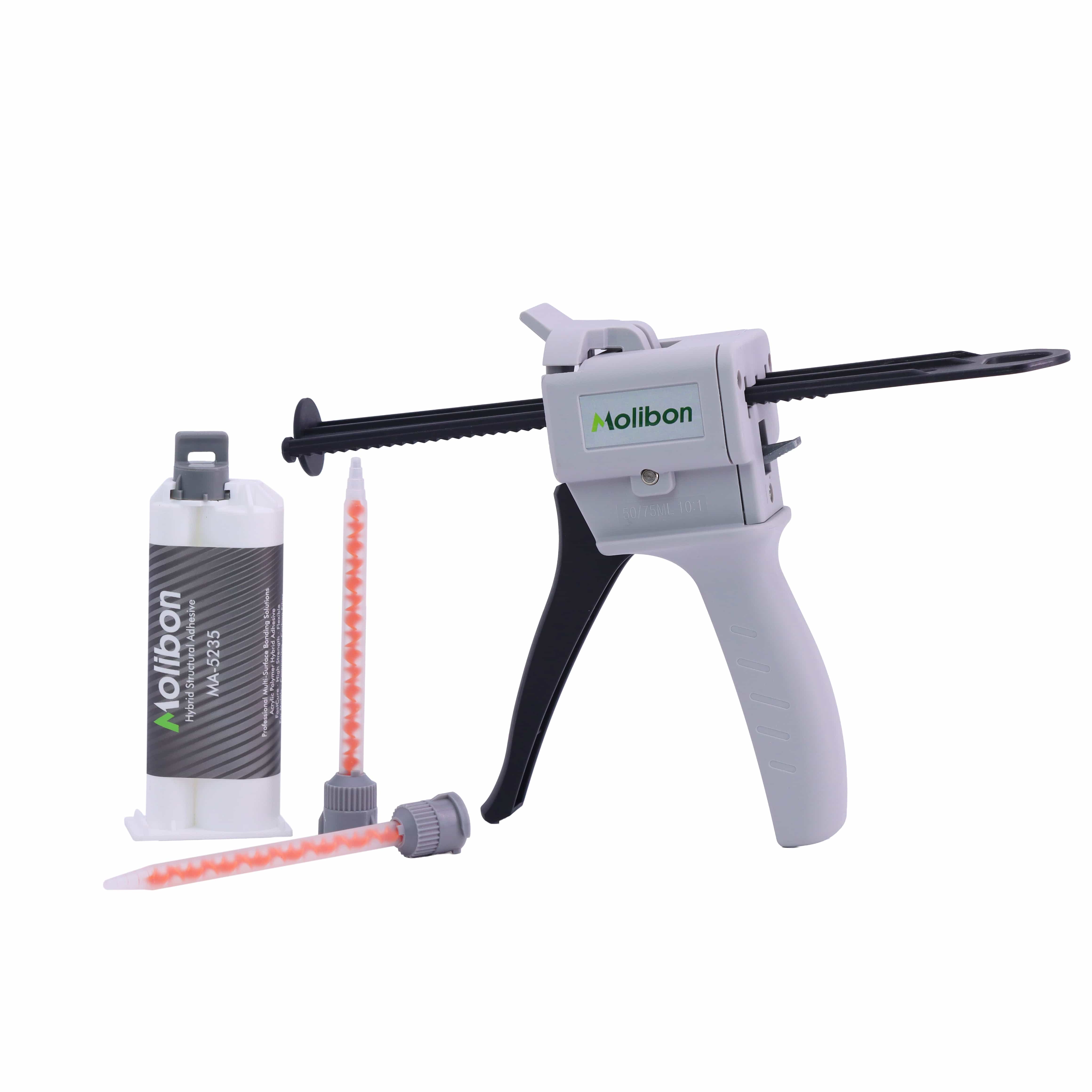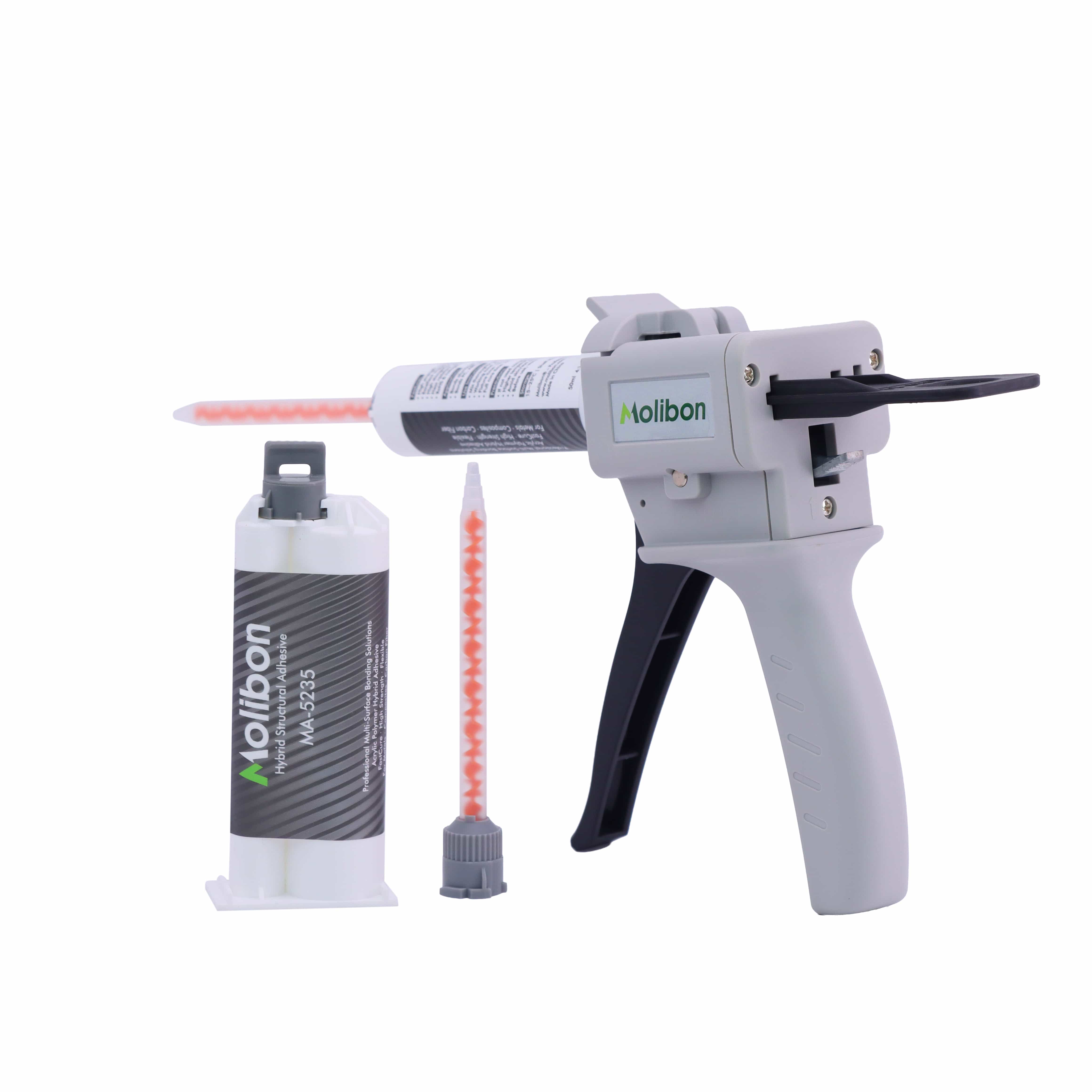 Two-component structural bonding adhesive is a hybrid adhesive formulated with acrylate and specialty polymers. The 50ml acrylic structural adhesive combines the strong metal-bonding capability and fast curing of acrylic adhesives with enhanced elasticity and elongation contributed by the incorporated polymers. With a Shore D hardness of 60, the product is suitable for direct bonding of most metals.