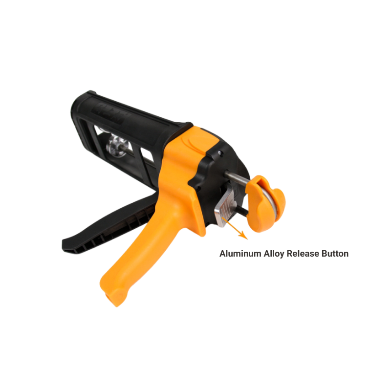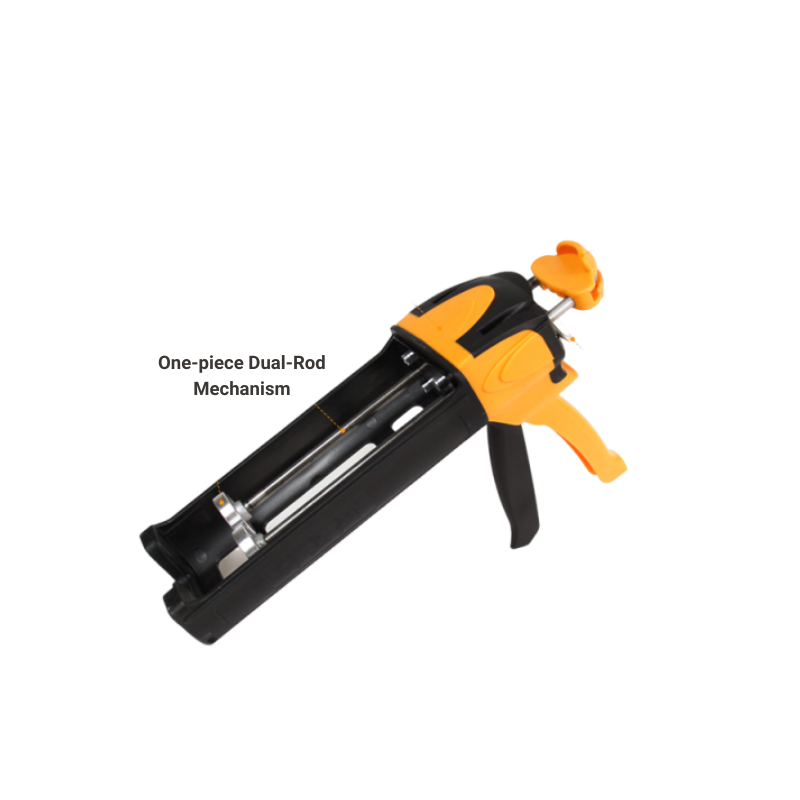 The upgraded caulking gun features a one-piece, synchronously-driven dual-rod mechanism that operates at a 1:1 ratio. This design eliminates uneven glue application caused by rod imbalance. The fatigue-resistant adhesive applicator gun adopts an aluminum alloy plunger, preventing application interruptions due to insufficient thrust and effectively ensures the continuity of construction.